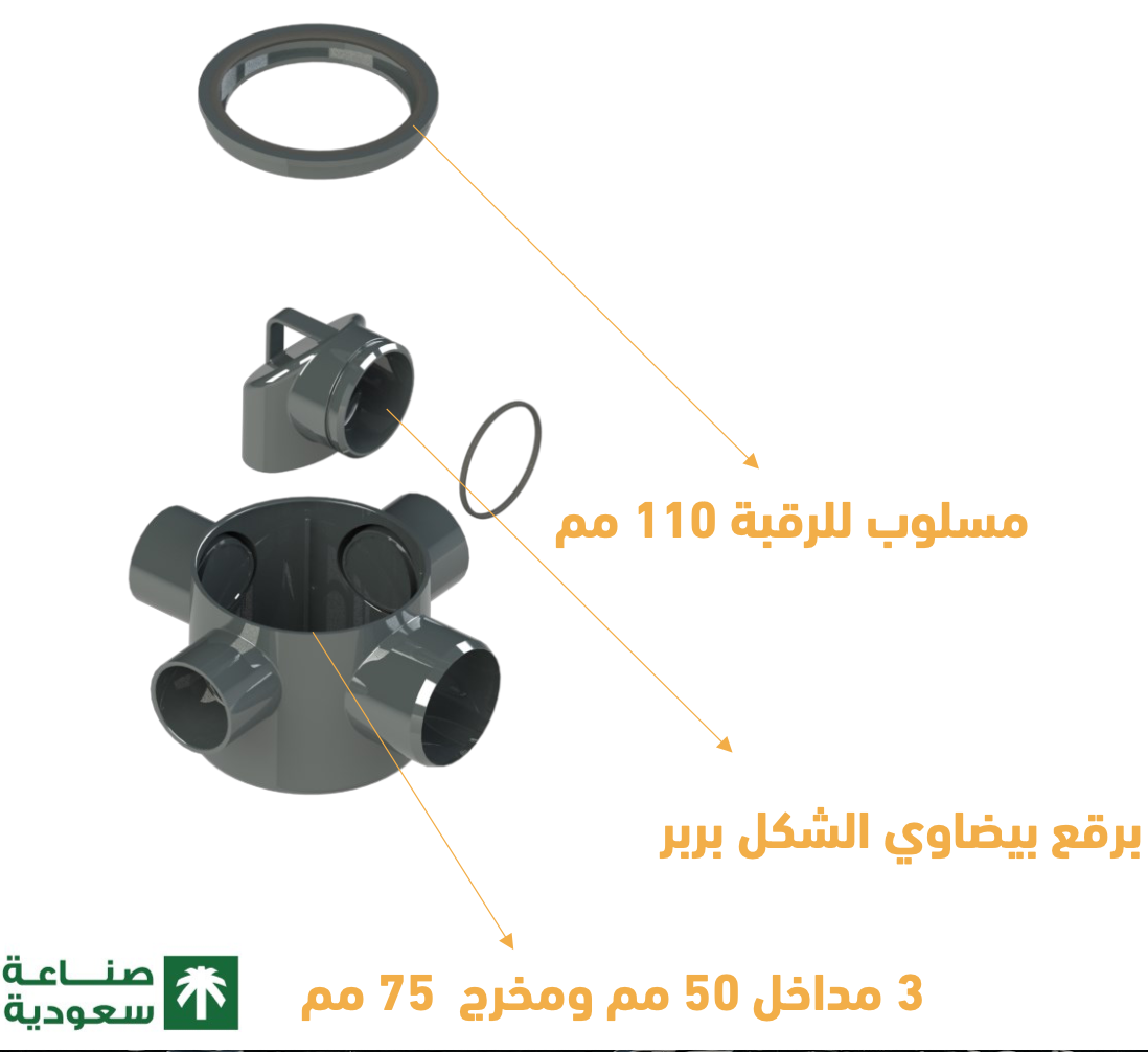 ✓ ثلاث مداخل 50 مم ومخرج 75 مم